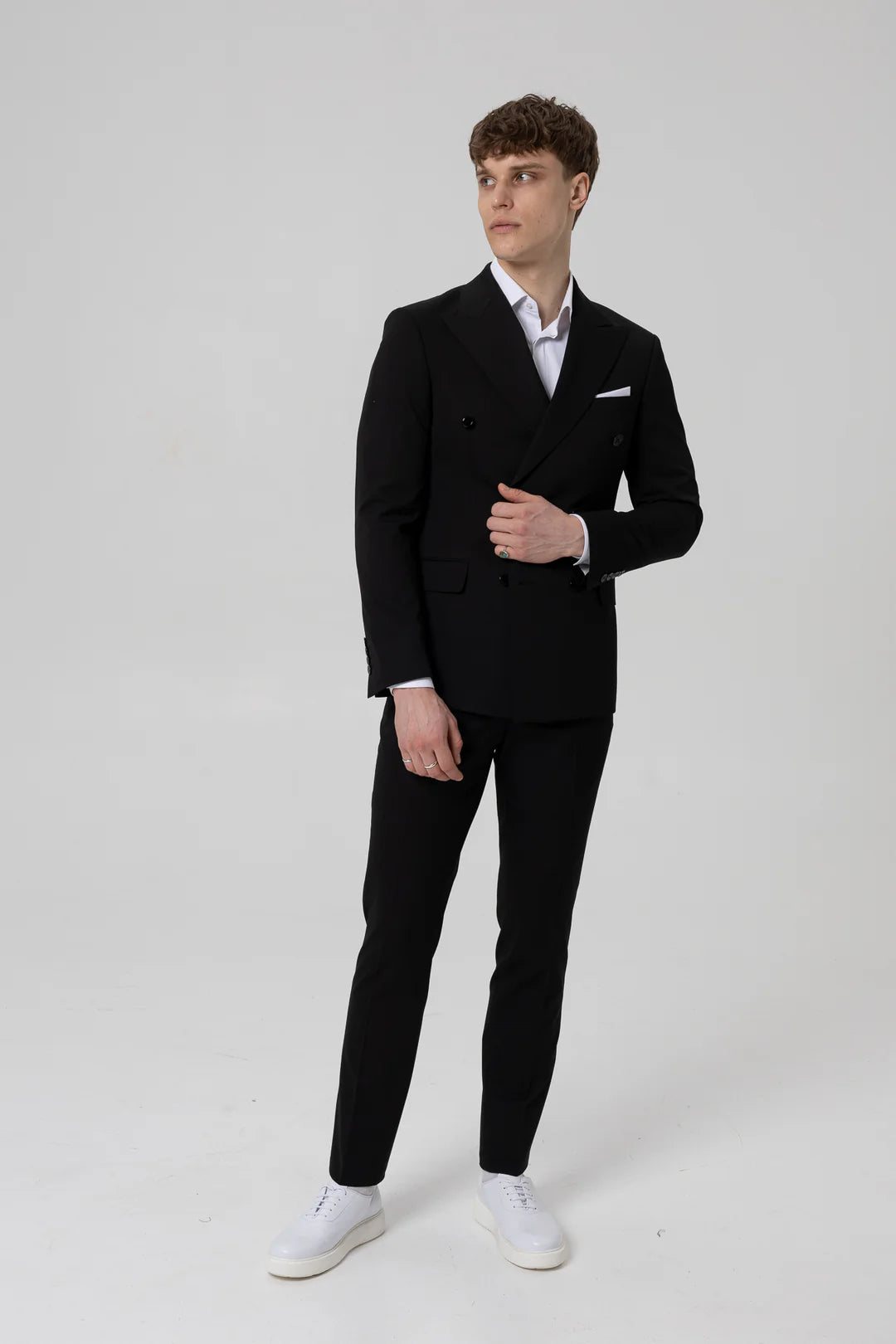 - Švarkas ir kelnės: Tamsiai pilkas arba bordo švarkas puikiai dera su siaurintomis kelnėmis. Languotas švarkas – drąsesniems, norintiems pabrėžti savo stiliaus pojūtį.