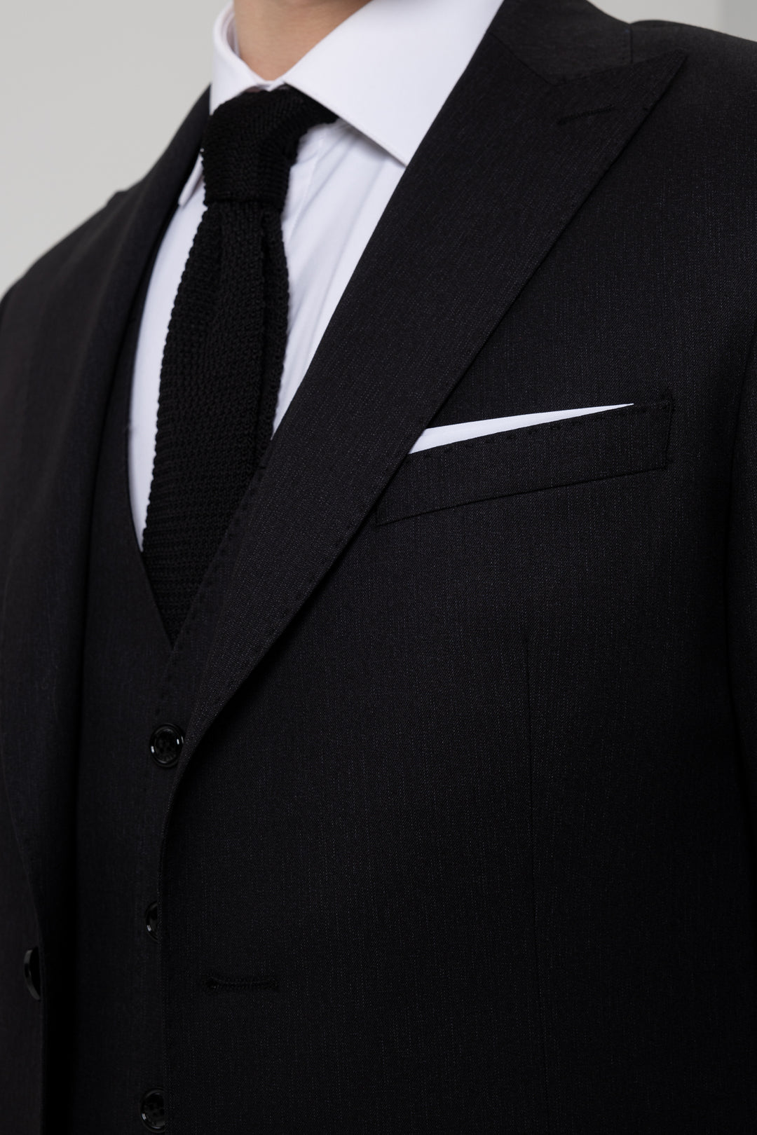 Juodas kostiumas privalo būti kiekvieno vyro garderobe. Jie yra universalūs, idealiai tinka oficialiems renginiams, tokiems kaip vestuvės ar bet kokio kito pobūdžio renginiai. Juodas kostiumas išsiskiria rafinuotumu ir elegancija, todėl yra puikus pasirinkimas vakaro renginiams. Derinkite jį su baltais ar ryškiais marškiniais ir elegantišku juodu kaklaraiščiu.