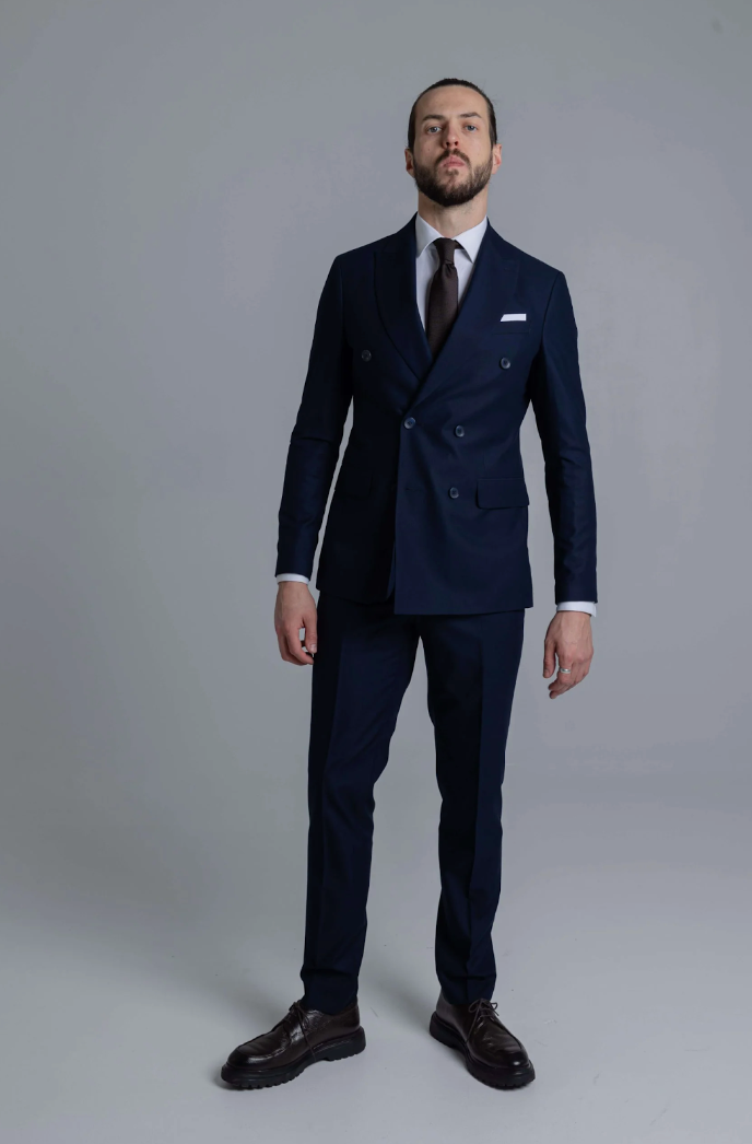 Tamsiai mėlynas kostiumas yra universalus pasirinkimas, kuris puikiai tinka ištisus metus, įskaitant ir rudenį. Tamsus jo atspalvis yra elegantiškas ir profesionalus, jį galima derinti su rudeniškomis spalvomis, tokiomis kaip varis ar bronza prie kaklaraiščio ar aksesuarų, kad prisiderinti prie sezoniškumo.