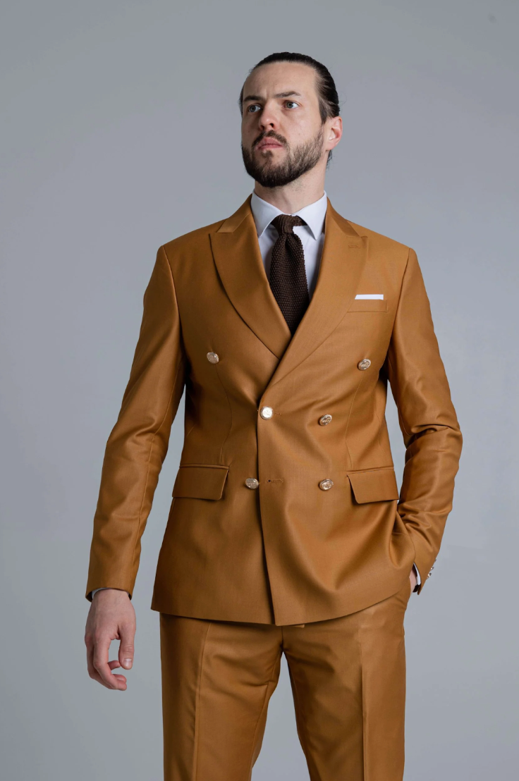 Vario rudos spalvos kostiumai rudens sezonui suteikia unikalios metalinės šilumos. Šis sodrus atspalvis puikiai tinka tiems, kurie nori išsiskirti kartu su sezono spalvomis. Derinkite jį su kreminiais arba dramblio kaulo spalvos marškiniais ir atitinkamais aksesuarais.