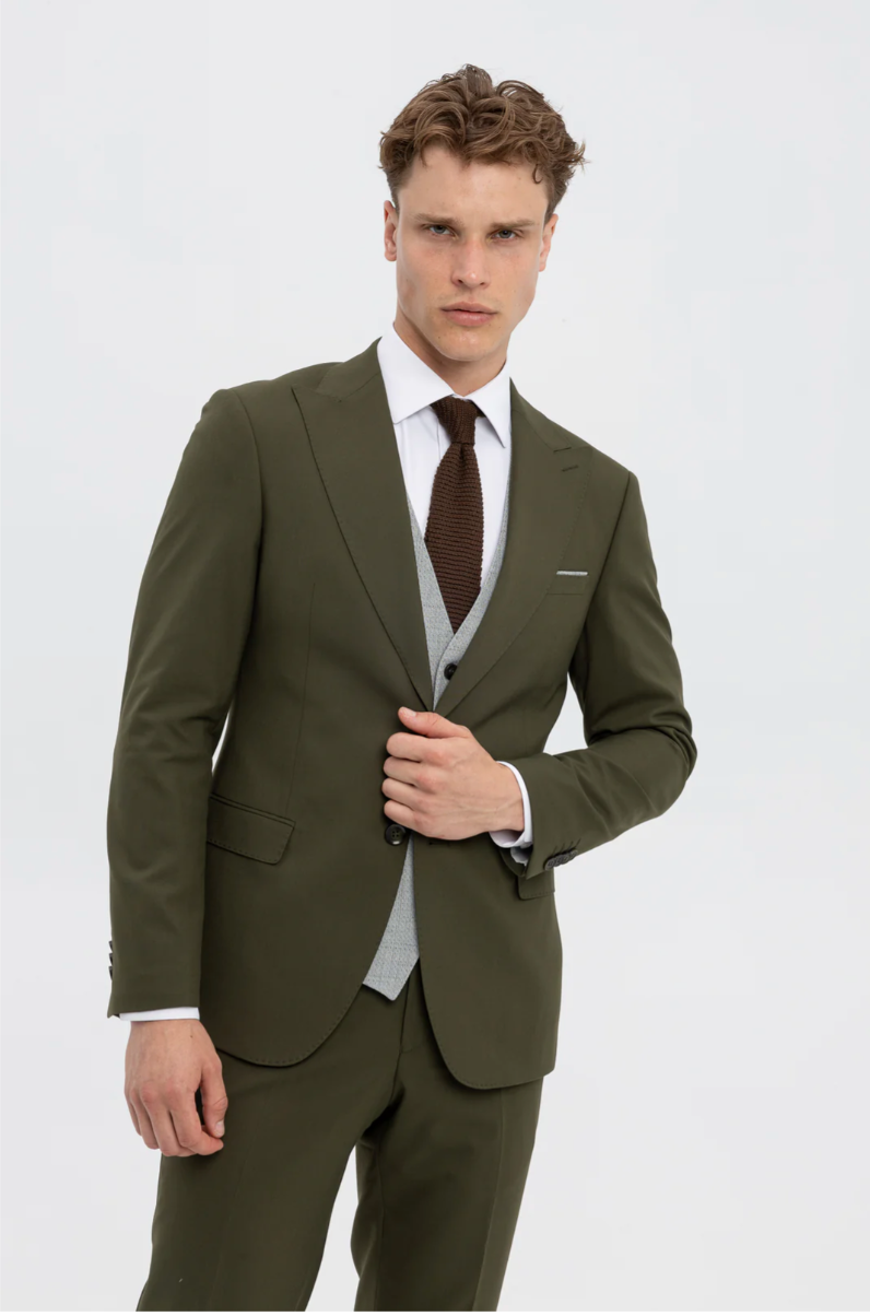 Alyvuogių žalios spalvos kostiumas suteikia natūralų, žemišką atspalvį, kuris puikiai papildo rudens sezoną. Tai puikus pasirinkimas tiems, kurie nori laisvesnio, bet stilingesnio įvaizdžio. Derinkite jį su rudais arba gelsvai rudais aksesuarais ir smėlio spalvos marškiniais, kad sukurtumėte rudeniui paruoštą aprangą.